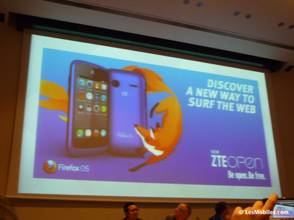 Alors que le constructeur chinois avait annoncé près d'une dizaine de mobiles à l'occasion du MWC 2012, ZTE a eu la bonne idée de ne se concentrer que sur deux smartphones pour cette édition 2013. Parmi les deux nouveautés, le ZTE Open annoncé comme le premier smartphone au monde à embarquer Firefox OS.Il s'agit bien entendu d'une déclinaison du célèbre navigateur Internet du même nom et conçu par la Fondation Mozilla. Il devrait bénéficier de la compatibilité avec tous les standards du Web et d'une interface épurée très fluide. Il s'agit d'un OS basé sur HTML5 et complètement open source, qui permettra également aux développeurs de distribuer leurs applications à travers le Firefox Marketplace.