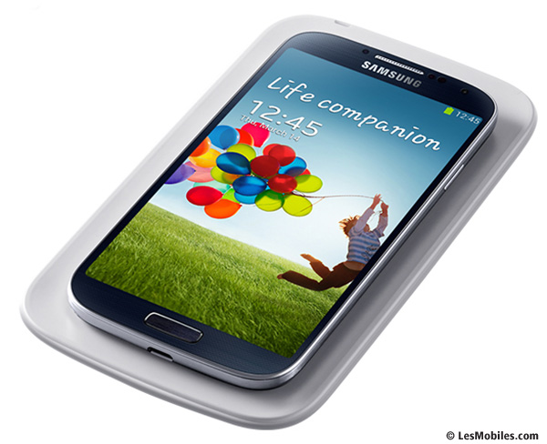 Voilà l'un des accessoires qui nous a le plus intrigué. Nous avions compris que le Galaxy S4 disposerait nativement d'un cache batterie compatible avec la recharge sans fil. Mais le constructeur a également précisé que cette recharge sans fil dépendrait aussi des pays. Si la station de recharge n'a rien d'étonnante en elle-même, c'est la mention de "Cover", qui s' apparente ici vraisemblablement à un cache batterie qui nous a surprise. Il faut peut-être comprendre du coup que tous les modèles ne disposeront pas d'un tel cache intégré d'office et que pour certains pays, la station de recharge sera fournie avec.