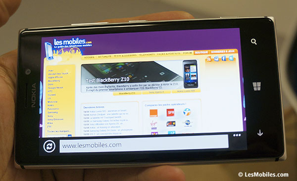 Même si la taille et la définition de l'écran restent identiques entre ce Lumia 925 et son prédécesseur, avec 4,5 pouces pour 1280 x 768 pixels, sachez tout de même que le constructeur a pris la peine de modifier quelques points. Pour commencer, il revient à la technologie ClearBlack Display (Amoled), contre du LCD sur le 920. Même si le LCD a aussi ses points forts, la majorité des utilisateurs préfère généralement l'Amoled pour ses couleurs plus vibrantes et ses noirs plus profonds. De fait, le rendu de l'écran du Lumia 925 nous est apparu comme prometteur, tant en termes de couleurs que de luminosité. Avec une densité de 332 pixels par pouce, la finesse d'affichage est également très correcte. De plus, si le Lumia 920 s'était distingué à sa sortie par sa faculté à être utilisé avec des gants, le nouveau venu va plus loin. Nous avons été en mesure de confirmer par nous même qu'il est possible d'utiliser l'écran de l'appareil avec d'autres types d'objets? comme des clés !