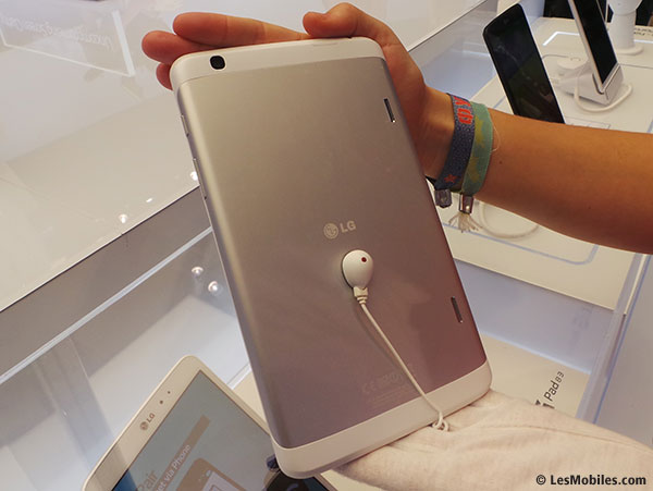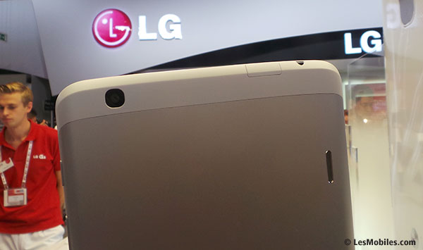 Le look de l'appareil reste sage avec des angles assez arrondis et des lignes épurées, qui ne réservent guère de surprise. Mais l'ensemble flatte la rétine par son charme discret, surtout que le Coréen a eu la bonne idée d'habiller son G Pad d'une coque en aluminium pour la partie arrière. Ce qui donne un certain cachet à l'ensemble. La tablette verra le jour en deux versions, noire ou blanche. Dans les deux cas, la jolie coque arrière semble assez sensible aux traces de doigts. Les flancs de l'appareil laissent apparaitre les habituels emplacements pour brancher un câble microUSB, les boutons de volume et le port microSD qui permet d'étendre la mémoire interne de 16 Go.