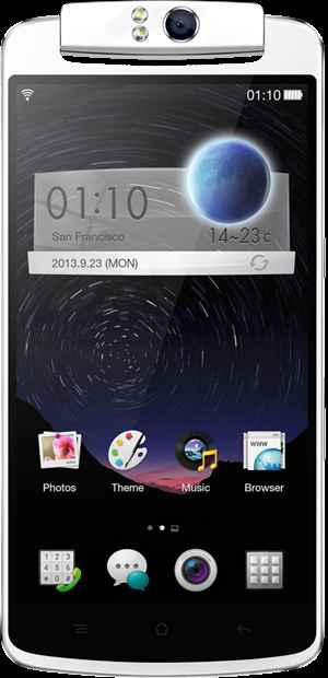 Principal argument de vente, son capteur CMOS 13 mégapixels associé à une optique lumineuse f/2.0 composée de 6 lentilles assurera ainsi la fonction de webcam en plus d'immortaliser les scènes à ne pas oublier. Pour ce faire, l'utilisateur pourra également compter sur un processeur d'image développé en partenariat avec Fujitsu IPS et promettant des couleurs plus réalistes grâce à son algorithme Pure Image. Ajoutez à cela un Flash double LED, des objectifs interchangeables et une réactivité à toute épreuve (Oppo promet une attente de 0,6 sec entre la mise en route de l'appareil photo et la première prise) et vous aurez là l'un des photophones les plus complets du marché. Reste évidemment à voir si cette fiche technique alléchante tient ses promesses en pratique.