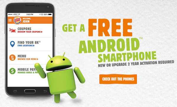 Fin de semaine. Le week-end approche à grands pas. En pleine recherche de sujets pour animer votre après-midi, nous tombons sur différents articles qui traitent d'une opération marketing chez Burger King qui mérite le coup d'oeil. La maison-mère américaine a en effet décidé d'offrir un smartphone à ses clients en échange de la souscription (ou du renouvellement) d'un abonnement (chez Sprint ou Verizon) avec engagement de deux ans. Le contenu de l'abonnement (et son prix) diffère naturellement en fonction du téléphone choisi. Mais quand il s'agit d'identifier le téléphone, nous avons quelques soucis.