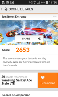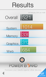 Pas de surprises sur les benchmarks, avec un score légèrement supérieur à 21 000 points sur AnTuTu et inférieur à 3 000 points au test Ice Storm Extreme de 3DMark. Nous avons aussi lancé Basemark OS II pour la forme. Ces scores se traduisent notamment par des performances convenables en jeu. Dead Trigger 2, FPS 3D plutôt nerveux, tourne relativement bien avec les graphismes au niveau intermédiaire malgré les habituels ralentissements en début de partie. Nous avons également pu jouer à Angry Birds Go! sans souci. Vous pourrez donc vous amuser, sans toutefois espérer obtenir des graphismes d'une grande finesse.