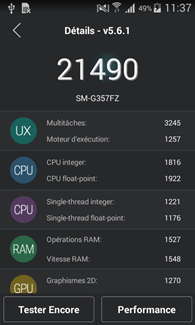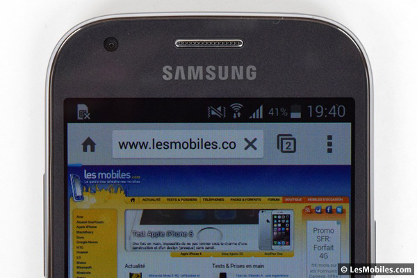 Il arrive encore que le système ralentisse et nous nous demandons bien pourquoi puisque nous avons déjà vu Android tourner proprement sur des configurations équivalentes voire plus légères. Cela n'arrive heureusement pas souvent et nous avons rapidement retrouvé nos marques puisque nous avons déjà eu l'occasion de tester quelques smartphones sous Snapdragon 410, dont d'autres Galaxy mais aussi l'Ascend G620S de Huawei et le Pop 2 d'Alcatel OneTouch. Pour rappel, le chipset se compose d'un CPU quad-core Cortex-A53 cadencé à 1,2 GHz et d'un GPU Adreno 306. Il est, comme souvent, servi avec 1 Go de RAM.