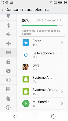 L'interface du mobile est ici la même que sur le MX4 Pro, testé dans nos colonnes à la fin du mois de février. Vous y retrouvez FlymeOS en version 4.2, basé sur Android KitKat 4.4.4. Pour un point complet sur cette version, nous vous conseillons la lecture des tests du MX4 et du MX4 Pro. Très peu de différences à noter sur ce M1 Note, outre l'absence inexplicable de SmartTouch, ce petit bouton virtuel bien pratique et repositionnable offrant des raccourcis vers quelques applications (et surtout un moyen de revenir en arrière quand aucune touche logicielle n'est proposée). Nous remarquons que quelques menus ont été francisés. Mais pas tous.