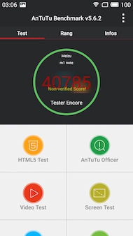 Observons les résultats aux tests. Sur AnTuTu, le smartphone obtient 40 785 points quand son profil énergétique privilégie les performances. Il atteint un score semblable à des smartphones sous Snapdragon 800. Le M1 Note est plus performant que certains concurrents directs comme le Desire 820 de HTC. Il dépasse aussi légèrement le Liquid Jade S d'Acer. Quant au MX3, il est largement dépassé...