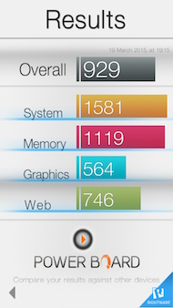 Sur 3DMark, la différence avec l?Adreno 405 du Snapdragon 615 est moins marquée, mais le Mali T760 parvient à prendre le dessus, certainement grâce au choix du profil de performance qui n'est pas accessible sur les autres smartphones. Ici, le M1 Note atteint les 10 714 points. Ce qui est très bon pour ce niveau de gamme qui tourne plus généralement autour des 5000 points. Sur Basemark OS II, le mobile atteint 929 points. Là encore, un score surprenant qui place le M1 Note à hauteur du MX4 Pro ou du Galaxy Alpha.