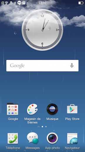 Seconde bonne surprise : le charme des icônes. Alors que certaines surcouches manquent clairement de finesse ou même d'originalité dans son iconographie, celle de ColorOS est juste classe, tout en restant explicite. Même si ColorOS ne révolutionne pas la prise en main d'Android (et ce n'est certainement pas ce que nous lui demandons), l'aspect visuel est encore une fois mis en valeur. Cela se ressent aussi avec le fond d?écran animé associé à la météo. Pourquoi avoir besoin d'un widget quand les gouttes de pluie peuvent perler sur l'ensemble de l'interface et éclabousser les icônes ? Oppo a également soigné les effets visuels lors de la sortie de veille du smartphone, la gestion du multitâche ou encore l?écran de personnalisation de l'interface.