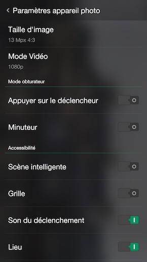 L'interface photo est à première vue simple, voire même vide de paramétrage. Ce qui nous a déçus. Mais, si vous tirez la petite petite flèche à côté du déclencheur, vous obtenez l'accès aux différents modes de prise de vue, dont un mode expert avec contrôle de la balance des blancs, de la compensation de l'exposition, de la vitesse d'obturation, de l'ISO et de la distance focale. Une vraie belle surprise. D'autant qu'il est possible d'ajouter de nouveaux modes, comme sur les Galaxy et le Xperia. Une douzaine de modes additionnels sont proposés.