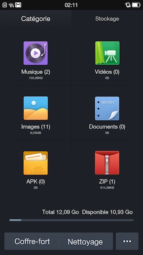Comme toute ROM chinoise qui se respecte, les applications système ont toutes été modifiées. Du gestionnaire de contacts à celui de la messagerie, en passant par les paramètres, la musique, la galerie photo (séparée du lecteur vidéo) ou l?horloge. Les captures d?écran de certaines d'entre elles accompagnent cet article. Parmi les applications additionnelles, notez la présence de deux outils de sauvegarde (un en local et un sur le Cloud), un explorateur de fichiers et un centre de sécurité (qui offre plus d'outils d'optimisation et de nettoyage que des barrières antiintrusion). Complétez cela avec la suite Google Play et deux logiciels tiers (Kingsoft Office et WeChat) pour finir le tour du propriétaire. Notez l'absence totale d'une boutique applicative alternative à celle du Play Store.