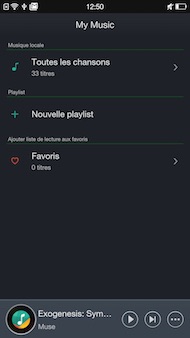 L'écran dédié à la musique