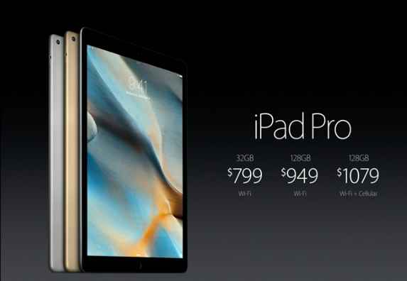 Et le prix dans tout ça ? Comme cela a été suggéré par quelques fuites, l'iPad Pro coûte le prix d'un MacBook entrée de gamme. Les prix en euro ne sont pas encore sortis, mais voici les prix en dollars (respectivement en version 32 Go, 128 Go et LTE 128 Go) : 799 dollars, 949 dollars et 1079 dollars. Rappelons qu'un MacBook Air 11 pouces coûte moins de 1000 euros aujourd?hui. Pencil sera en vente à 99 dollars et Smart Keyboard à 169 dollars. Nous reviendrons plus en détail sur l'iPad Mini 4 et les changements dans la gamme de tablettes dans un prochain article.