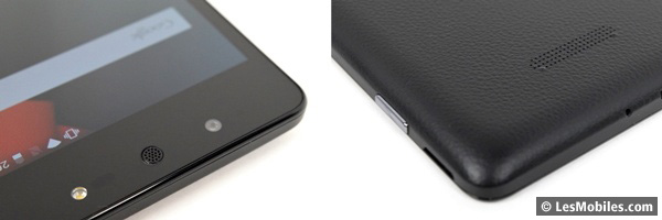 Nous répétons assez souvent que ce n'est pas l'emplacement idéal pour le haut-parleur, surtout lorsque le capot n'est pas complètement bombé, mais Wiko a tout de même pensé à ajouter deux petites « béquilles » pour permettre au son de s'échapper lorsqu'il est posé à plat. Le Selfy 4G est donc plutôt bien construit, à défaut de pouvoir concourir pour un prix de beauté.