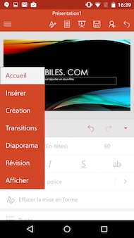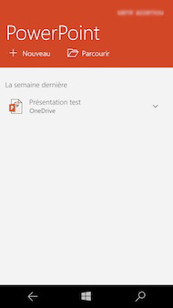 PowerPoint est très similaire à Excel. La présentation des fichiers, le niveau de compatibilité avec les outils Office pour PC et Mac, PowerPoint Mobile est une excellente plate-forme pour visualiser des présentations, modifier l'ordre d'affichage, voire même supprimer des slides. C'est un réel soulagement que de voir débarquer sur un mobile une version de PowerPoint capable d'afficher en intégralité les présentations au format pptx. Cependant, ce n'est en aucun cas un outil pour créer et modifier en profondeur le fichier. Qu'il s'agisse des vidéos, des musiques, des animations de diapositives ou des masques d'arrière-plan, voilà des domaines où Office Mobile vous bloquera.
