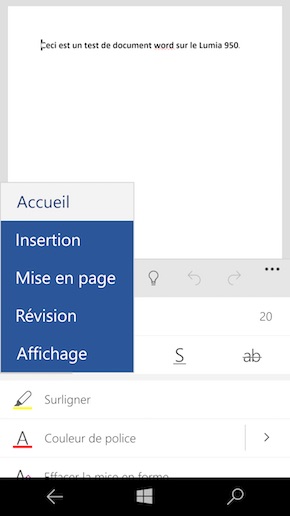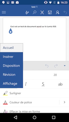 Pour bien vous faire comprendre, prenons un exemple parmi les briques de la suite Office. Et choisissons évidemment la plus importante (ou plutôt la plus populaire et emblématique) : Word. Symbole d'une productivité mise à mal par les smartphones, les écrans tactiles, des portages ratés et une compatibilité moyenne, Word est enfin un outil facile à utiliser sur un smartphone. Déjà, dans sa version Android, le logiciel de traitement de texte est une vraie réussite. Sur Windows 10 Mobile, le constat est évidemment le même. Nous regrettons naturellement l'absence d'intégration avec les alternatives à OneDrive (notamment Google Drive et Box.net), alors qu'elles existent sur la version Android. Une remarque qui vaut évidemment pour les autres briques d?Office.
