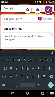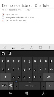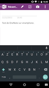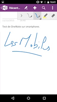 S'il y a bien un outil d?Office qui prend tout son sens sur un smartphone, c'est bien OneNote. L'outil de prise de notes montre ici une efficacité redoutable. Logiciel sorti en 2003 et ayant certainement inspiré Apple Notes et Google Keep, OneNote propose, dans sa version 2016, d'intégrer à une note du texte au long, des listes de tâches à effectuer (avec une petite case à cocher), etc. Les outils de mise en page sont ici réduits à leur plus simple appareil : gras, italique, souligné, barré et stabiloté.