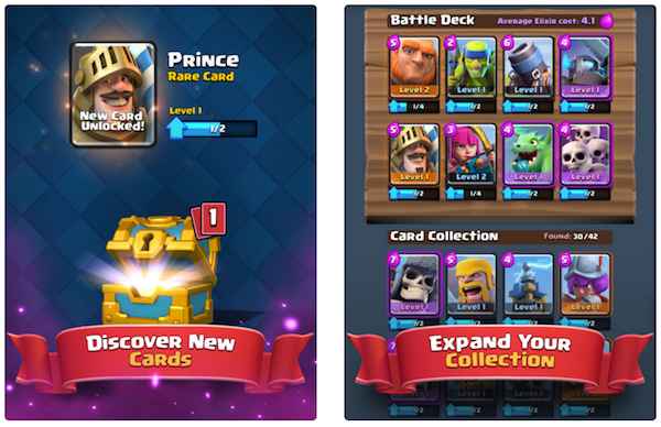 Pour attaquer le château adverse et défendre son propre royaume, le joueur dispose d'une demi-douzaine d'unités, de sortilèges et de monstres différents qu'il choisit à partir de son propre jeu. Ces unités, sous forme de cartes à collectionner (avec achats intégrés pour en obtenir plus), lesqelles sont plus ou moins puissantes et plus ou moins rares. De plus, il est possible de les améliorer en gagnant quelques piécettes suite aux combats. Savoir marier les différents types d'unités est évidemment l'une des clés de la victoire. Savoir quand activer chaque unité en est une autre, puisqu'il y a un temps de rechargement pendant lequel il n'est pas possible de l'invoquer à nouveau.