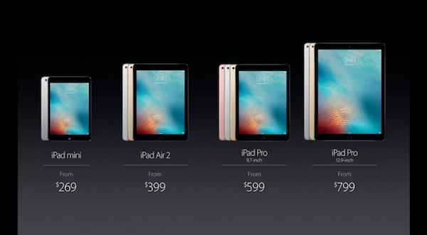 Reprenant la nomenclature actuellement en cours dans la gamme Mac (iMac, MacBook Pro, MacBook Air), l'iPad Pro se décline désormais en deux tailles, tout en gardant une plate-forme pratiquement identique. Quelques ajustements ont en effet eu lieu, notamment en photo (puisque certains utilisateurs d'iPad semblent s?évertuer à prendre leurs photos de vacances avec leur tablette). Mais vous retrouvez dans le second iPad Pro l'essentiel de ce qui a été présenté en octobre dernier dans un format cependant beaucoup plus contenu, puisque l?écran ne mesure que 9,7 pouces et non 12,9 pouces.