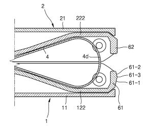 L'idée est donc la suivante : quand vous pliez le smartphone, la charnière protège l?écran tactile au niveau de la pliure pour respecter son rayon de courbure minimal et éviter qu'il ne se casse. La partie interne de la charnière est composée de plusieurs bandes qui permettent de plier et déplier le smartphone. La partie externe comprend également plusieurs parties certainement métalliques qui assurent la protection de cette partie sensible. Ces schémas sont très intéressants.