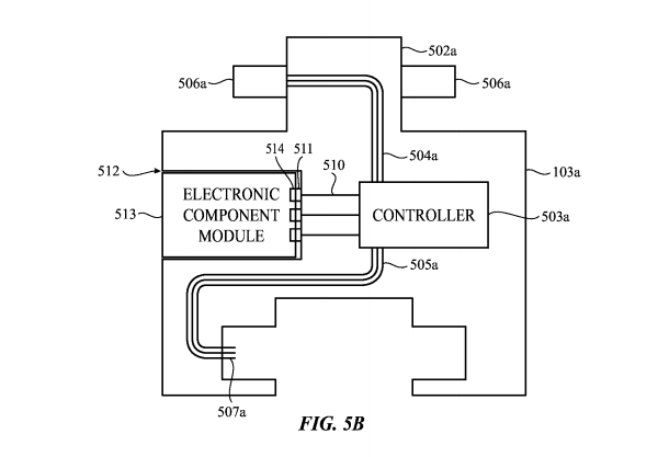 Dans les schémas qui accompagnent ce brevet (et dont certains illustrent cet article), les ingénieurs d'Apple ont imaginé plusieurs configurations possibles pour les modules du bracelet. Mais tous ont un point commun : l?énergie et les informations transiteront entre les modules par des connecteurs cachés au centre des accroches rondes qui maintiennent deux modules ensemble. Grâce à leurs formes, les accroches offrent la souplesse nécessaire à la construction pour tourner autour du poignet. Notez qu'il existerait des modules où le composant électronique additionnel serait rangé à l'intérieur (c'est le cas de la batterie par exemple). Mais il en existe d'autres avec un emplacement prévu pour accueillir une pièce additionnelle. Ce serait un module... modulaire.