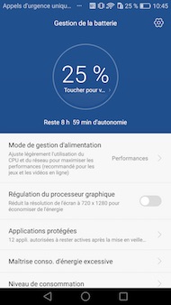 Troisième nouveauté, l'intégration du lecteur d'empreinte offre à EMUI une nouvelle surface tactile pour créer des interactions. Il peut servir à ouvrir le volet des notifications ou à naviguer dans les albums photo. Cela rappelle les interactions offertes par Meizu dans FlymeOS avec son propre lecteur d'empreinte. Enfin, quelques applications systèmes ont été mises à jour. C'est notamment le cas de l'application photo que nous verrons en fin de ce test, mais également de quelques fonctions avancées pour gérer les performances, la batterie et la consommation de data. Beaucoup d'efforts semblent avoir été faits dans ce sens.