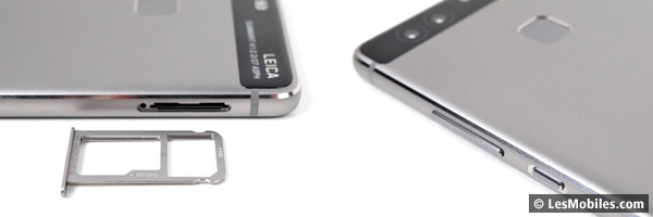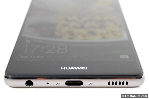 Une autre preuve se trouve sur les tranches du téléphone. Comme l'année dernière, le bouton d'alimentation est davantage travaillé que les contrôles du volume. Mais cette fois-ci, il est davantage texturé (un peu comme le bouton du mode silencieux du OnePlus X). Ce n'est qu'un détail. Mais Huawei voulant monter en gamme, tout est une question de détail. Faisons d'ailleurs le tour des tranches : à droite se trouvent les boutons matériels ; à gauche le tiroir pour la carte SIM et la carte mémoire ; en haut le micro pour la réduction de bruit active ; et en bas le port USB type C, le jack 3,5 mm (un peu coincé sur la bordure inférieure), le micro principal et le haut-parleur.