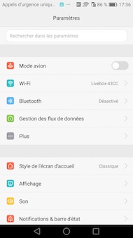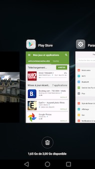 Même si Huawei a développé une astuce pour cacher les icônes indésirables, nous regrettons encore une fois la présence de nombreuses applications commerciales (six jeux et un lien marketing de Gameloft, une suite Office, deux réseaux sociaux, des applications commerciales, ou encore l'excellent News Republic) dans une interface, par défaut, encombrée. Malgré cela, EMUI reste fluide grâce à 3 Go de mémoire vive bien utile. Car Android en consomme d'emblée la moitié, n'en laissant qu'un peu moins de 1,5 Go à l'utilisateur pour ses propres besoins. De même, sur les 32 Go de stockage, seulement 23 Go sont réellement disponibles pour l'usager. Une carte mémoire devrait donc être rapidement nécessaire.