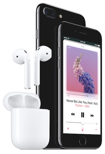Comme les rumeurs l'annonçaient, les AirPods sont un casque audio sans fil dont chaque oreille est indépendante (et intègre donc toute l?électronique pour fonctionner). Concurrent naturel de The Headphones de Bragi ou de l'Icon X de Samsung, il occulte toute la partie fitness (pas de cardiofréquencemètre) pour se concentrer sur l'autre aspect de ce type d'accessoire : la musique et le kit mains libres. Visuellement, les AirPods ressemblent à un casque EarPods (les casques proposés en standard dans la boite des téléphones) sans le câble, ni la télécommande pour la prise de contrôle de la musique.
