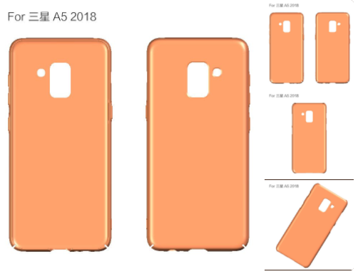 À l'arrière, nous retrouverions le bloc photo composé d'un capteur et du lecteur d'empreinte, déporté comme sur le S8 (mais pas tout à fait comme le Note 8). À droite du bloc se trouveraient le cardiofréquencemètre et le flash. La seconde série de visuels représente une coque pour le Galaxy A5 (2018) qui semble confirmer les éléments cités précédemment. Vous pouvez également voir que Samsung conserve le jack 3,5 mm, à côté du port USB (type-C, logiquement). En outre, le Galaxy A5 (2018) semble gagner un bouton Bixby, comme sur le Galaxy S8.