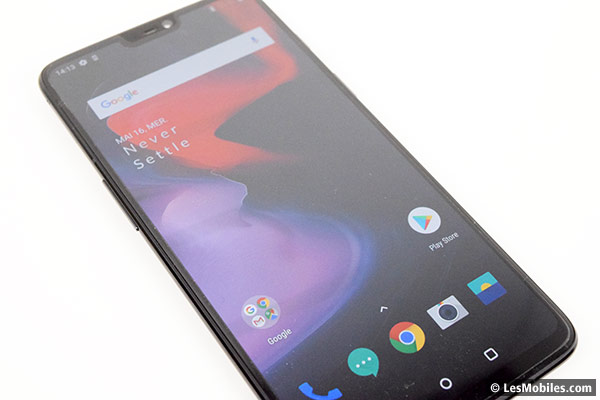 Première approche : le design. Le OnePlus 6 marque l'arrivée d'une nouvelle coque. À l'avant, nous remarquons tout de suite la grande dalle tactile 19/9e de 6,28 pouces à la définition Full HD+ (résolution de 403 pixels par pouce, comme tous les flagship killers précédents). Nous pouvons voir l'encoche typique de ce début d'année, laquelle peut être masquée au niveau software (comme sur le G7 ThinQ).