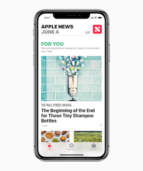 nouveau Apple News (à gauche) et raccourcis Siri (à droite)