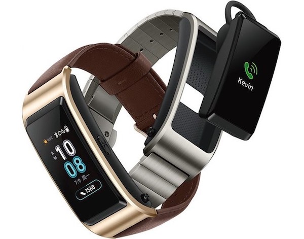 Le Talkband B5 devrait conserver son originalité première : celle d'un bracelet dont le bloc central se détache pour devenir une oreillette sans fil, expliquant pourquoi il s'appelle ainsi. Cette hypothèse est confirmée par une fuite en provenance de notre confrère américain Evan Blass qui a posté sur son compte Twitter la photo ci-dessous. Elle montre deux modèles de Talkband : un premier à gauche avec boitier doré et bracelet en cuir, un second à droite avec boitier gris et bracelet métallisé. Notez que ce n'est que la partie centrale en noir qui se détache. Sur l?écran, vous constatez que les notifications et l?heure sont en couleur. Il est fort possible que la dalle soit OLED, comme les générations précédentes.