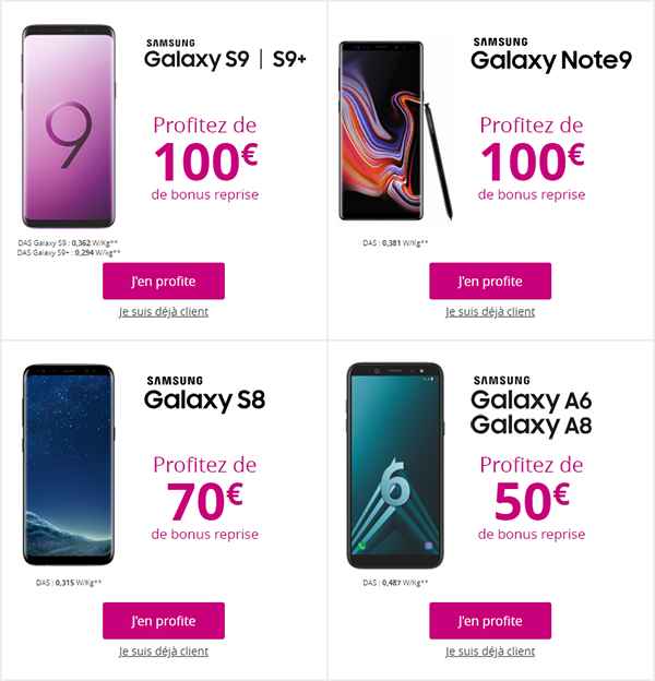 - 100 euros de bonus reprise pour l'achat du Samsung Galaxy Note 9, S9 ou S9+