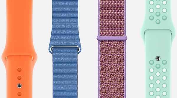 Côté Apple Watch, les coloris s'accordent évidemment avec ceux des coques pour les iPhone. Papaye, Lilas et Bleuet sont de retour. Mais il y en a bien d'autres Les modèles concernés sont nylon, boucle sport, boucle moderne, boucle cuir et Nike Sport. Les boucles Hermès, les plus chers des bracelets, ne sont pas oubliées avec six nouveaux modèles : Swift Rose, Swift Bleu et Swift Étoupe, déclinés chacun en simple tour et double tour.