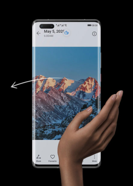Pour la partie photo, le Mate 40 Pro est équipé d'un capteur photo principal de 50 mégapixels f1/.9 avec stabilisateur optique, d'un autre de 20 mégapixels f/1.8 pour le grand angle. Il y a aussi un capteur de 12 mégapixels avec zoom optique 5x. A l'avant, il y a un capteur de 32 mégapixels avec possibilité de grand angle et un autre capteur. Ce dernier sert à détecter les gestes produits devant l?écran. Le smartphone est ainsi capable de répondre à des commandes gestuelles pour répondre à un appel, prendre en pause de la musique, reprendre la lecture, passer au titre suivant, revenir au précédent et faire défiler les pages dans le sens de la hauteur (la seule possibilité jusqu'ici possible sur le précédent modèle).