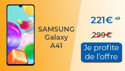 Le Galaxy A41 possède un écran Oled de 6.1 pouces avec une définition de 2400 x 1080 pixels. Le modèle concerné par l'offre est blanc, dispose de 64 Go d'espace de stockage et d'une mémoire RAM de 4 Go.