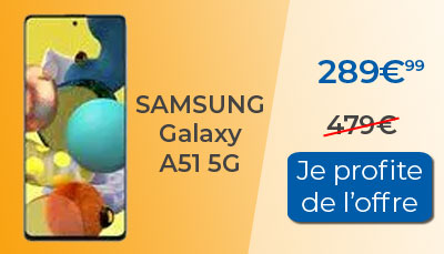 Vous pouvez également vous orienter vers un modèle un peu plus performant comme le Samsung Galaxy A51 5G qui est actuellement proposé au prix de 289.99? au lieu de 479?. Vous profiterez donc d'une promotion de -40% sur ce modèle sorti en 2020.