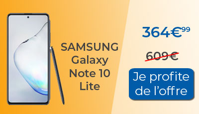 Le Samsung Galaxy Note 10 lite est également en promotion chez Rakuten. Vous le trouverez à 364.99? au lieu de 609?, soit une réduction de -40%. L'offre concerne le modèle noir, avec un espace de stockage de 128 Go et 6 Go de RAM.