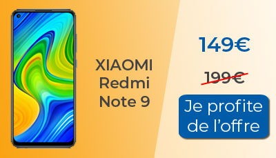 Si vous êtes intéressés par le Xiaomi Redmi Note 9, sachez que c'est l'opérateur RED By SFR qui le propose au meilleur prix. Il est proposé au prix de 149? au lieu de 199? soit une remise de 50? sur ce smartphone. Bénéficiez de 30? de remise immédiate ainsi que de 20? de remise en différée. Vous n?êtes pas obligés de souscrire à un forfait mobile pour profiter de ce tarif très avantageux. Le Redmi Note 9 possède un écran de 6.53 pouces, un espace de stockage de 64 Go, une batterie batterie améliorée de 5020mAh ainsi qu'un capteur photo principal de 48 Mpx.