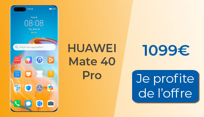 Pour ceux qui sont à la recherche d'un smartphone très haut de gamme, le Huawei Mate 40 Pro sera un très bon choix. C'est l'opérateur RED by SFR qui le propose au meilleur prix aujourd?hui. Il est en effet proposé à 1099?. L'opérateur propose le paiement en 4 fois sans frais, c'est-à-dire 4 mensualités de 274.75?. Le Mate 40 Pro possède un écran immersif et intelligent de 6.76 pouces, 4 capteurs photo et une batterie de 4 400 mAh. Il est animé par un SoC Kirin 900, l'un des plus puissants du marché. Il possède 8 Go de mémoire vive et un espace de stockage de 256 Go.