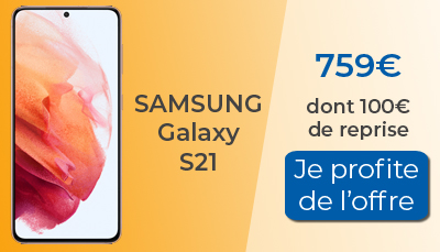En ce moment même et jusqu'au 15 mars prochain, Boulanger vous propose une offre de reprise de votre ancien smartphone pour tout achat d'un Samsung Galaxy S21 ou d'un S21+ 5G. Si vous aviez craqué pour ce téléphone, c'est le moment de se faire plaisir. En échange de la reprise de votre ancien téléphone, quel que soit le modèle, vous bénéficierez d'un bonus de 100? de reprise. Ainsi, votre Samsung Galaxy S21 ne vous coûtera plus que 759? au lieu de 859?.
