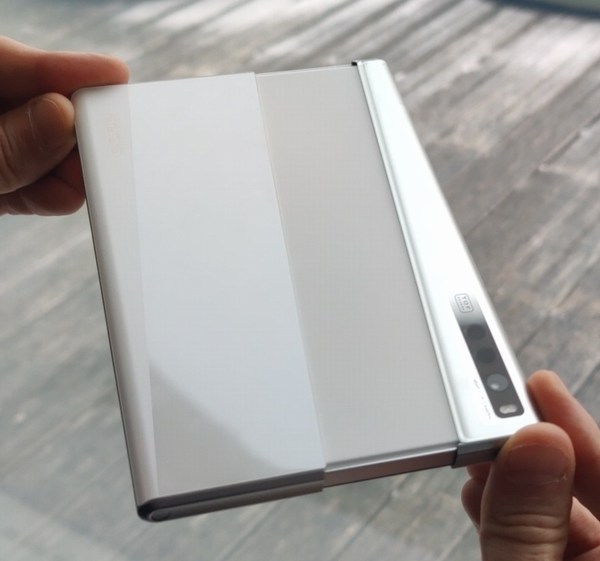 Le Oppo X Concept 2021 a été l'objet d'une très brève démonstration en vidéo en fin d'année dernière. Nous avons cependant eu la chance de pouvoir passer un petit moment avec lui en main pour voir dans la réalité cette nouvelle façon de penser ce qui pourrait être le futur des téléphones portables d'ici peu. Aussitôt, nous avons imaginé une prochaine commercialisation d'un tel produit étant donné que le constructeur est prêt à le montrer. Mais? « Quel les choses soient bien claires, il n'est pas question de vous présenter ici un smartphone fini ayant pour vocation à être commercialisé. Non, ceci est un prototype qui doit être considéré comme une piste de développement pour de potentiels futurs téléphones portables » Voilà comment les « choses » ont donc été clarifiées avant notre petite prise en main du produit par les équipes d?Oppo en toute sympathie, bien entendu. Calmé sur le sujet, nous avons donc pu apprendre que l'objet en question avait été conçu grâce à plus d'une centaine de brevets déposés dont 12 rien que pour le système d?écran enroulant. Trois technologies sont utilisées conjointement pour arriver à un tel résultat. Tout d'abord, il y a deux moteurs qui assurent l'ouverture et la fermeture du dispositif. Ensuite, à l'intérieur, il y a comme deux peignes en métal qui viennent s'imbriquer l'un dans l'autre pour permettre une bonne tenue de l?écran sur toute sa largeur. Enfin, juste dessous l?écran, il y a un film en métal qui le soutient afin d'obtenir une pression égale sur toute sa surface d'affichage et notamment sur la partie incurvée.