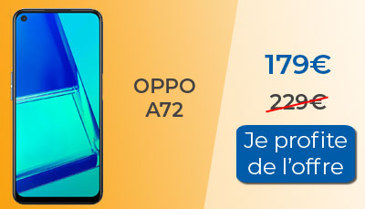 Après les bons plans Samsung et Xiaomi, regardons de plus près ce que propose Oppo pendant les soldes. Sur le site de Boulanger, vous découvrirez avec plaisir que l?Oppo A72 est en promotion à 179? au lieu de 229?, soit une réduction immédiate de -21%. Avec Boulanger bénéficiez d'une livraison gratuite et rapide ainsi que du paiement en plusieurs fois si nécessaire.