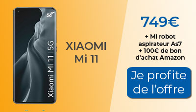 Depuis l'ouverture des précommandes hier, le Xiaomi Mi 11 a rejoint le catalogue de nombreux marchands dont Boulanger, Rakuten, RED by SFR, Fnac ou encore Amazon. En l'achetant chez ces partenaires, vous pourrez profiter de l'aspirateur offert. Le Xiaomi Mi 11 est proposé par l'ensemble des marchands à 799? sauf chez Amazon ! En effet, la meilleure offre pour le moment pour un Xiaomi Mi 11 pas cher est chez Amazon. Il est en effet proposé à 749? avec en bonus un bon d'achat de 100 offert, valable sur tout le site. De quoi se faire plaisir !