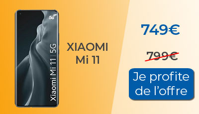 Ce smartphone a été annoncé à un prix de vente de 799? par le constructeur Xiaomi. Si vous n'avez pas de magasin Fnac ou Darty à proximité, foncez Amazon pour un Xiaomi Mi 11 pas cher, dès aujourd?hui. Il est en effet proposé à 749? au lieu de 799? soit une remise immédiate de 50?.