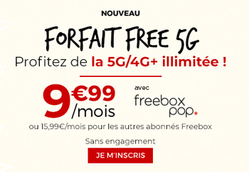 Clients de la Freebox ? Vous pouvez bénéficier de ce forfait Free 5G au prix de 15.99?/mois ! Abonnés à la Freebox Pop ? Alors votre forfait vous coûtera seulement la somme 9.99?/mois !