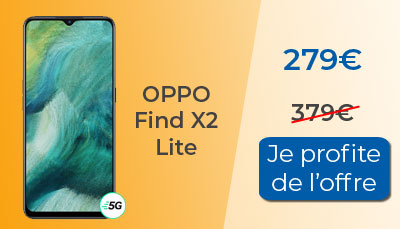Parmi la série Find X2 du constructeur Oppo, on trouve l?Oppo Find X2 Lite. C'est le smartphone le plus abordable de la gamme car il s'agit d'une version allégée. En attendant que son successeur l?Oppo Find X3 Lite soit disponible, vous pourrez trouver le Find X2 Lite au meilleur prix chez l'opérateur RED by SFR. Avec 100? de remise immédiate, il est proposé à 279? au lieu de 379?.