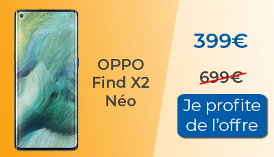 Avant de découvrir l?Oppo Find X3 Néo qui sera disponible dans quelques jours, sachez que l?Oppo Find X2 Néo est proposé à un prix exceptionnel chez Boulanger aujourd?hui ! Son prix passe de 699? à 399? seulement ! Soit une réduction immédiate de -42%. Il s'agit d'une très belle affaire car ce modèle n'est sorti que l'année dernière. Il offre donc encore de très belles performances.