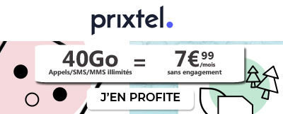 L’opérateur Prixtel propose quant à lui 7€/mois de réduction la première année d’abonnement sur son forfait Le grand, neutre en CO2 et sans engagement. Disponible sur le réseau Orange ou SFR, au choix, il vous offre donc jusqu’à 40Go d’Internet en France pour la somme de 7.99€/mois pendant 1 an avant de passer au tarif mensuel de 14.99€. Si vous consommez plus, vous paierez davantage votre abonnement.