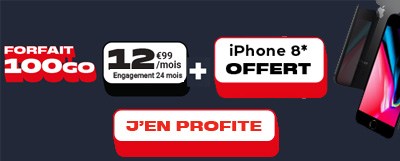 Pour obtenir gratuitement votre iPhone 8, il vous faudra souscrire au forfait Ultimate Speed 100Go pour une durée minimale de 24 mois en payant ce dernier la somme de 12.99?/mois (au lieu de 19.99?/mois). Si vous souhaitez vous engager pour une durée plus courte, c'est possible de souscrire pour 12 mois ; dans ce cas, votre forfait vous coûtera 27.99?/mois (au lieu de 34.99?/mois) pendant cette période.